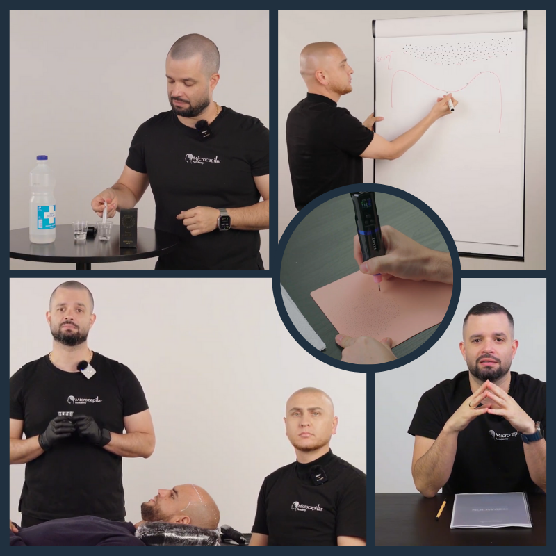 Aprenderás desde cero todo lo que un profesional necesita para empezar a trabajar de verdad: tipos de piel, patrones, densidades, pigmentos, máquinas y el proceso completo de micropigmentación capilar.